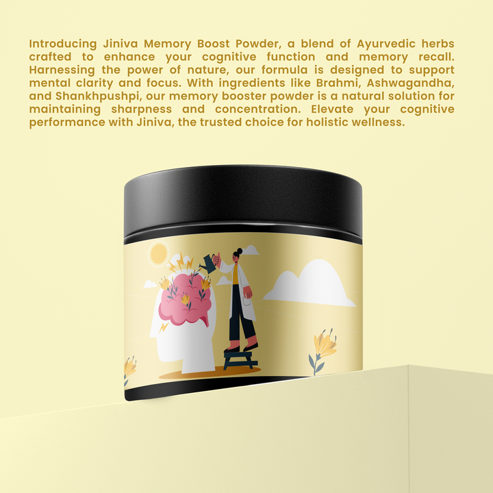 Introducing Jiniva Memory Boost Powder, a blend of Ayurvedic herbs crafted to enhance your